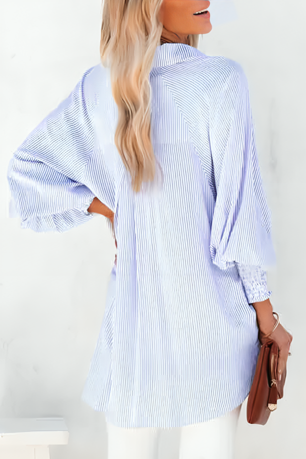 Inspirada en la elegancia europea, esta camisa de rayas largas con solapa es la definición perfecta de estilo casual. Ideal para cualquier ocasión, desde la oficina hasta encuentros informales.