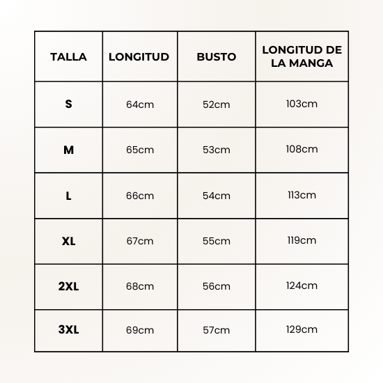 TABLA DE TALLAS
