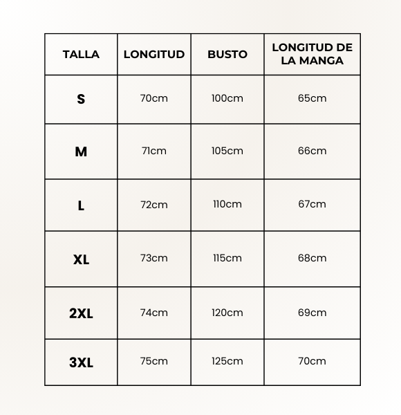 TABLA DE TALLAS