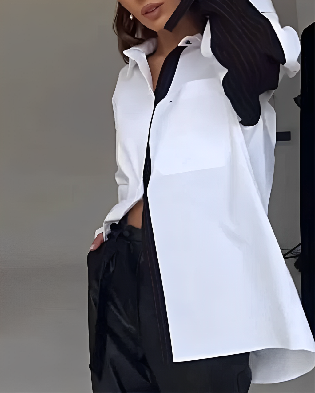 El diseño suelto y fluido se adapta perfectamente a cualquier tipo de cuerpo, proporcionando libertad de movimiento sin perder estilo. Perfecta para usar tanto en la oficina como en salidas casuales, combinándola con jeans o pantalones formales.